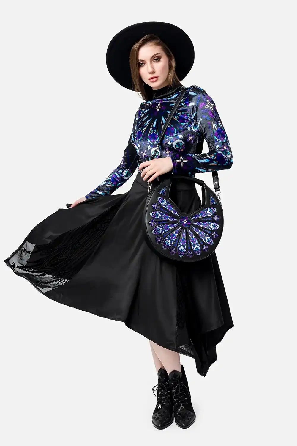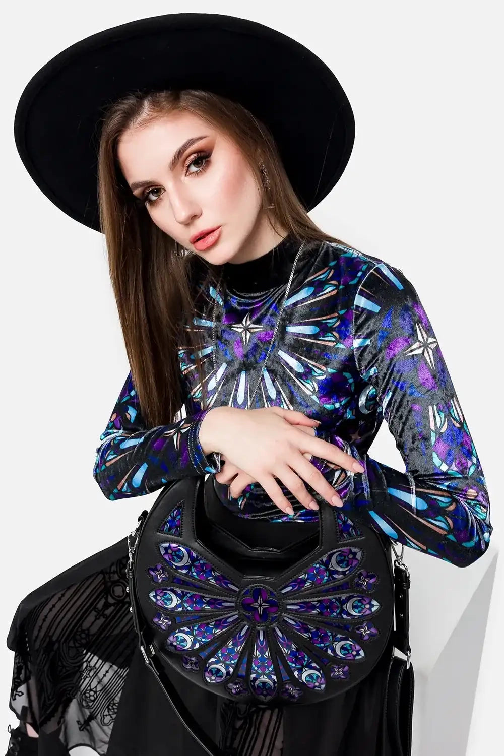 Gothic Sacred Rose Shoulder Bag with Stained Glass Effect – Unique Handbag for Alternative Styles