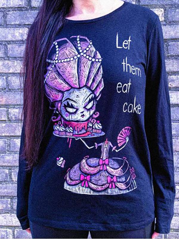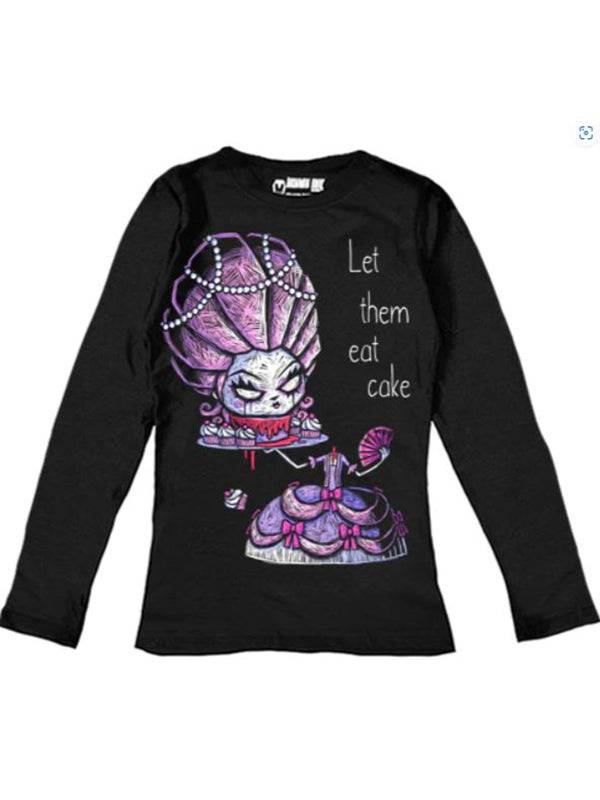 Haut manches longues en coton noir avec illustration d'Akumu Ink.