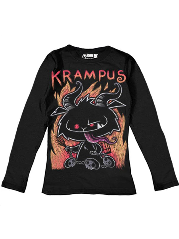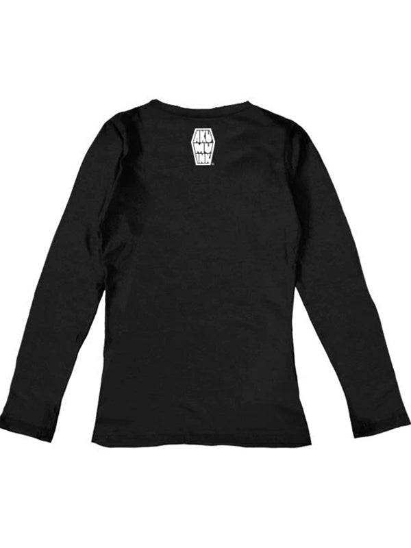 Haut manches longues en coton noir avec illustration d'Akumu Ink.
