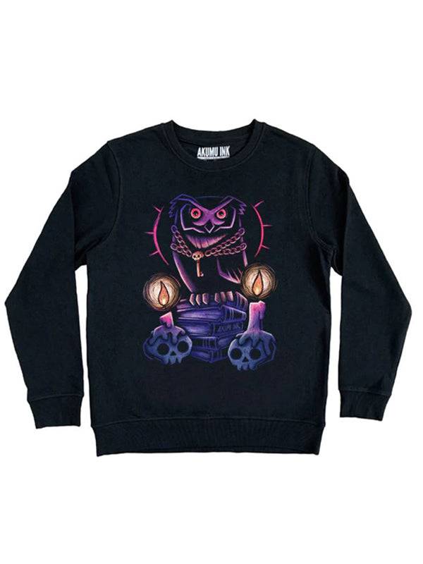 Akumu Ink Owl's Crypt Black Sweatshirt - Eco-Friendly 80% Cotton Art Print
