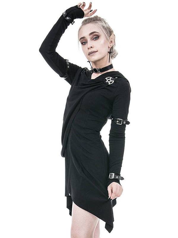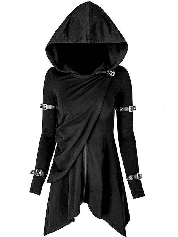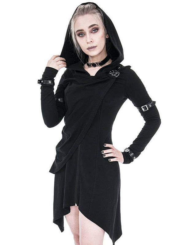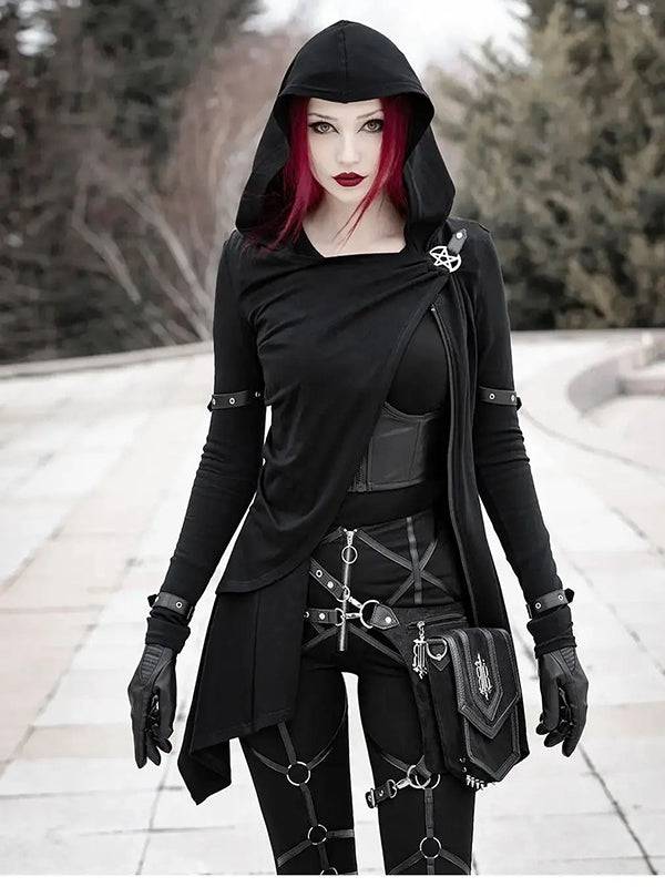 Sweat à capuche 100% coton avec lanières en cuir sur les manches et fermoir pentagramme.