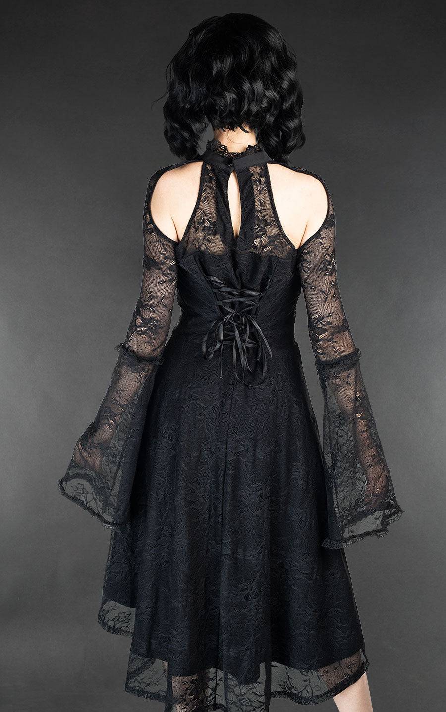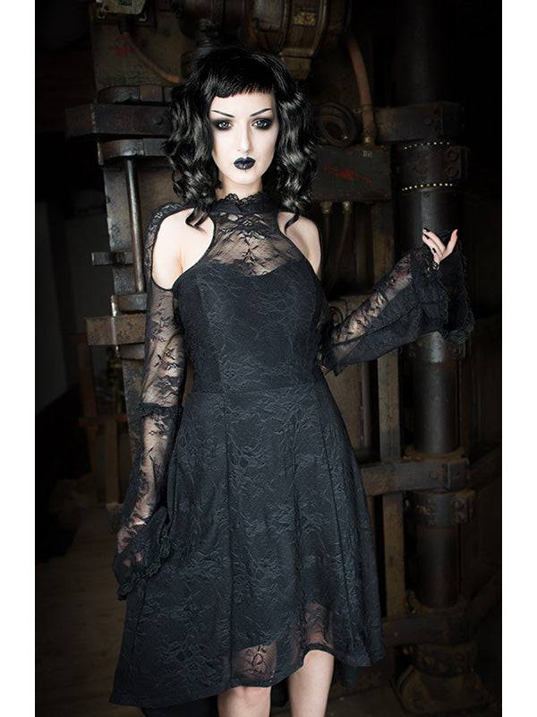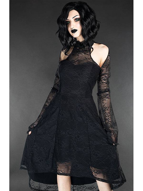 Robe avec superposition de tissu. La première en tissu doux et confortable et la deuxième en dentelle. Parfaite pour toutes celles qui aiment les vêtements gothiques ou la couture gothique. Le tissu est élastique.