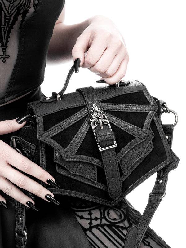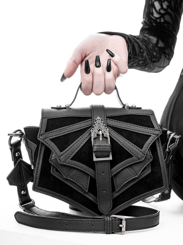 Petit sac gothique présentant un motif aile de chauve-souris.