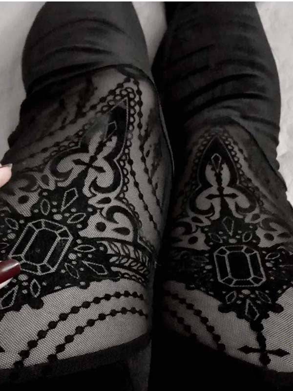 Leggings en velours et voile avec taille élastique pour plus de confort.