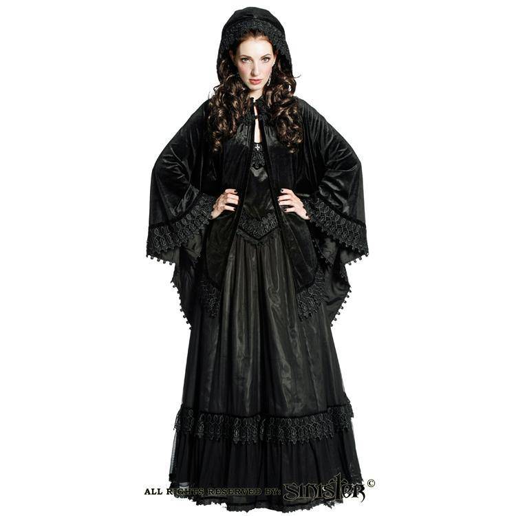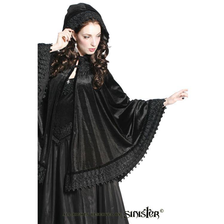 Black Velvet Gothic Cape with Batwing Sleeves - Half Length Style by Sinister Clothing