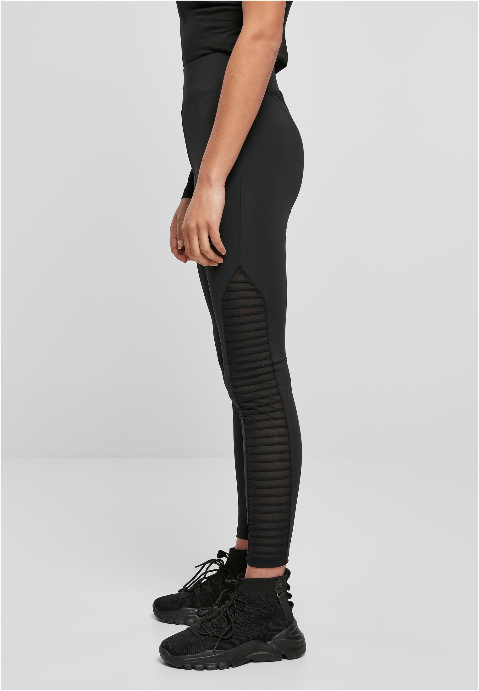 Women's High Waist Biker Tech Mesh Leggings - Comfortable Stretch Jersey and Breathable Mesh