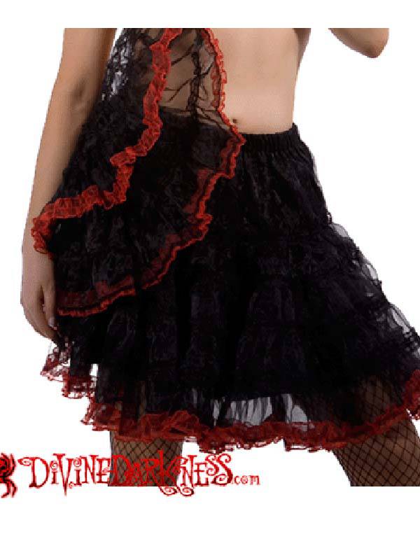 Petticoat en tulle noir avec bordure rouge. Taille élastique