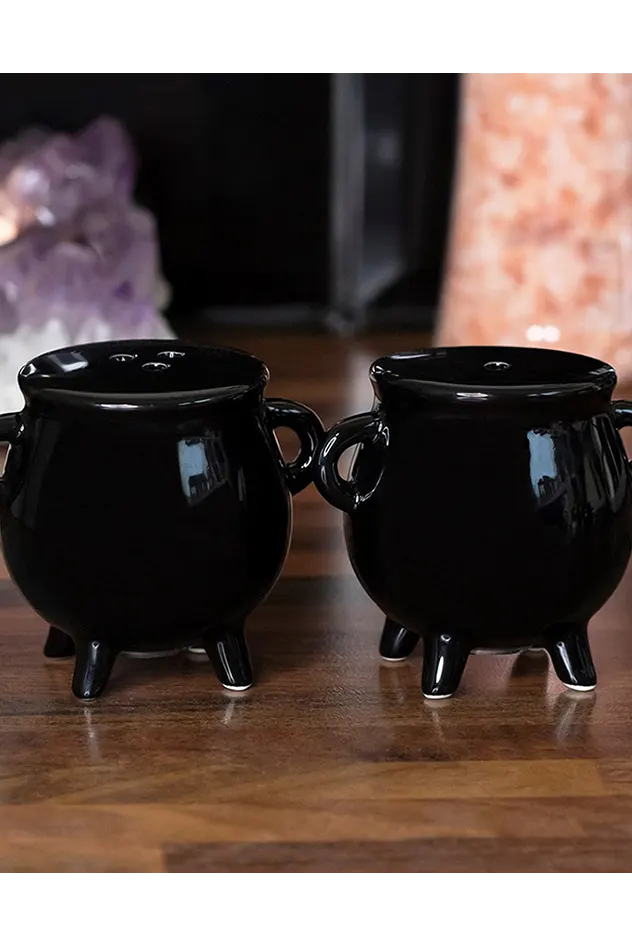 This adorable Cauldron Cruet Set is the perfect companion to our bestselling Witches Brew Cauldron Mug. Made with a rubber bottom stopper to keep salt and pepper contained. Do not microwave. Dishwasher safe.