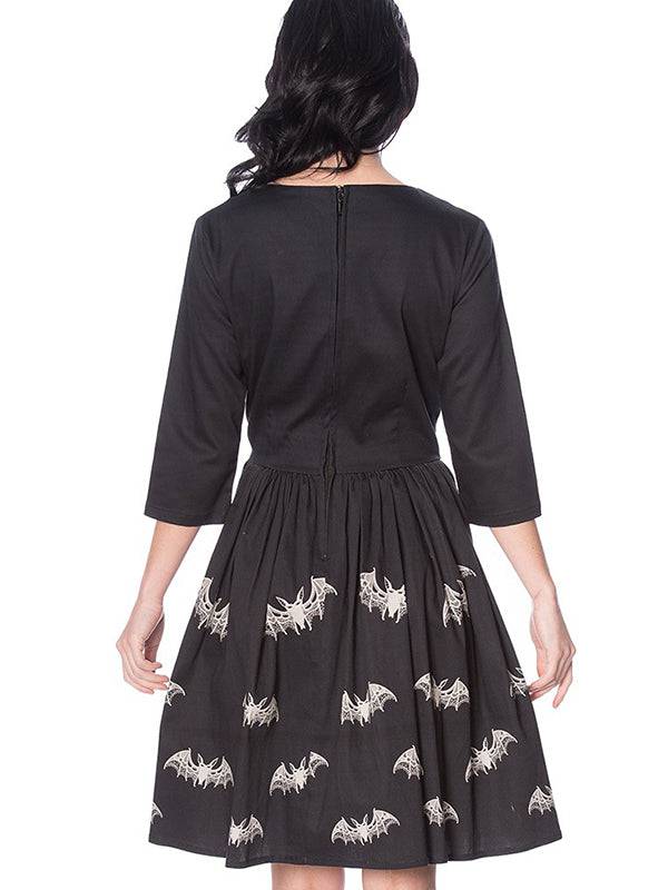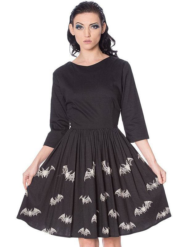 Banned Robe gothique manches 3/4 avec fermeture éclair au dos imprimé chauves-souris. Coton et élasthanne.