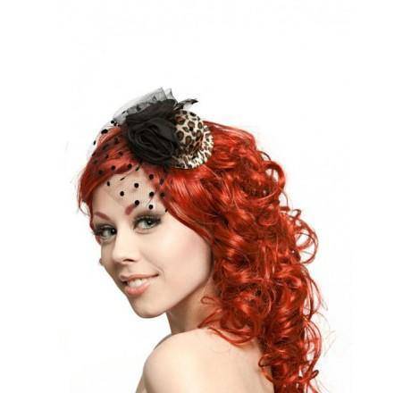 Mini chapeau clip avec fleur, plume et voile. S'attache avec un clip